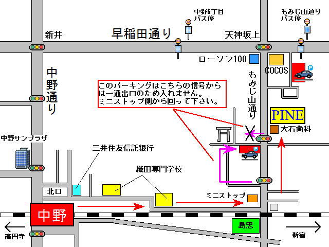 ![]() ●中野駅から地図のルートですと徒歩約10分。 ●店舗外観 ![]() ◎店舗前の駐車スペースが利用できます。 ![]() ◎この看板を目印にお越し下さいませ。 ●住所 〒164-0001 東京都中野区中野6-28-8 冨田ビル101 03-5389-5772 ●交通 ◎JR中央総武線、東京メトロ東西線 「中野駅」北口改札を出て徒歩8分 ◎関東バス「もみじ山通り」バス停下車3分 |